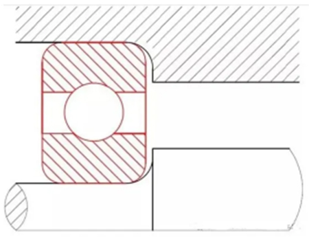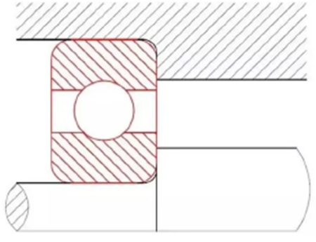 如上圖所示當軸承倒角小于軸承箱與軸肩倒角時,無法裝配到位,容易造成軸承倒角處應力集中,裝配傾斜,其他配合零件無法匹配等一系列問題。
